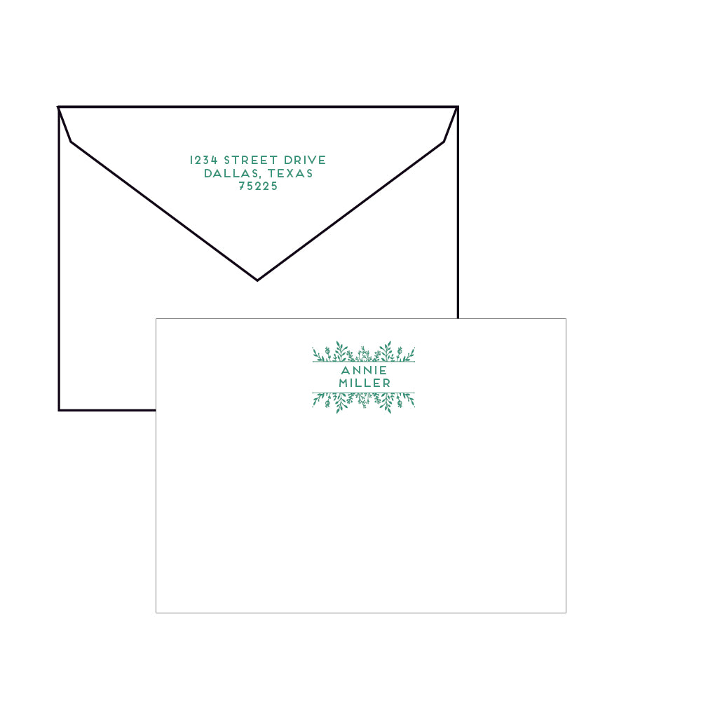 Letterpress printed stationery card sets by The Essential Market include personalized cards and envelopes.