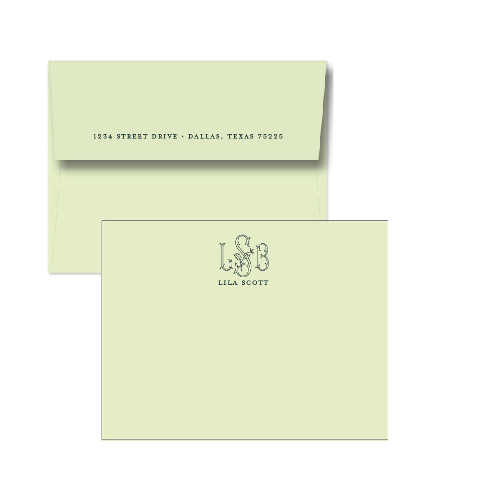 Foil stamped stationery card sets by The Essential Market include personalized cards and envelopes. These stationery cards are colorful and luxurious.