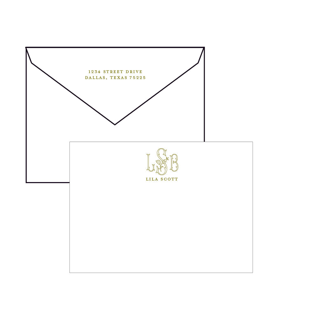 Letterpress printed stationery card sets by The Essential Market include personalized cards and envelopes.