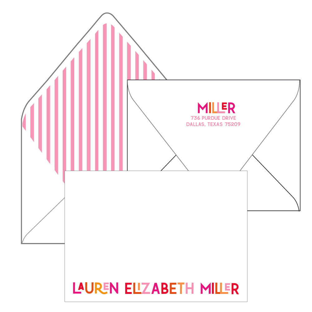 Digitally printed stationery card sets by The Essential Market include personalized cards and envelopes. Make your stationery even more special by adding envelope liners to your order.