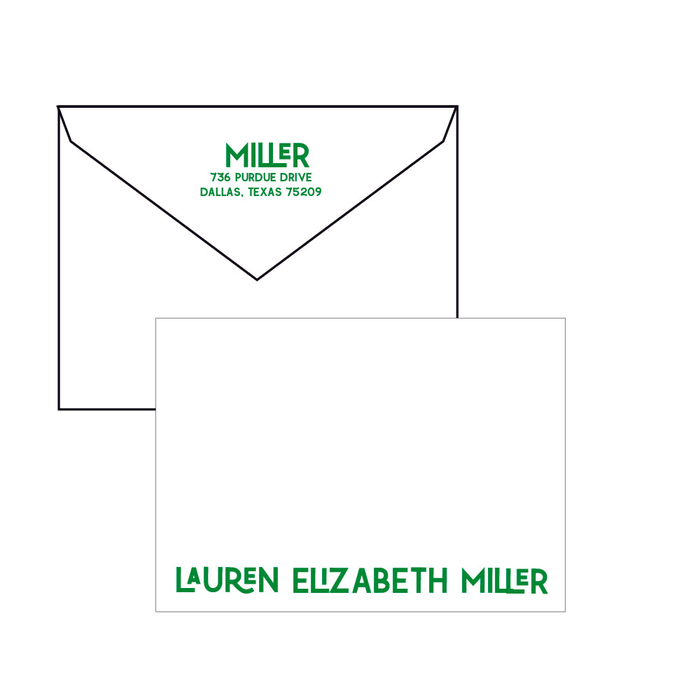 Letterpress printed stationery card sets by The Essential Market include personalized cards and envelopes.