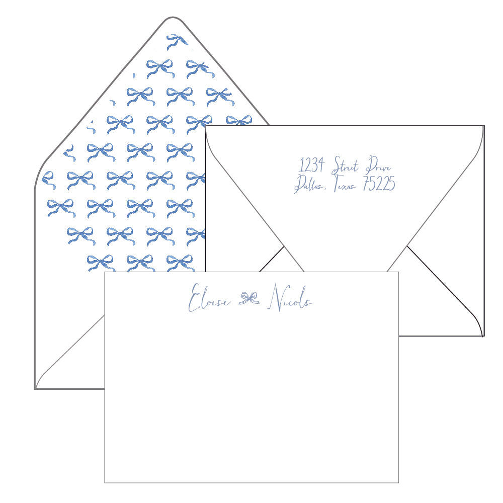 Digitally printed stationery card sets by The Essential Market include personalized cards and envelopes. Make your stationery even more special by adding envelope liners to your order.