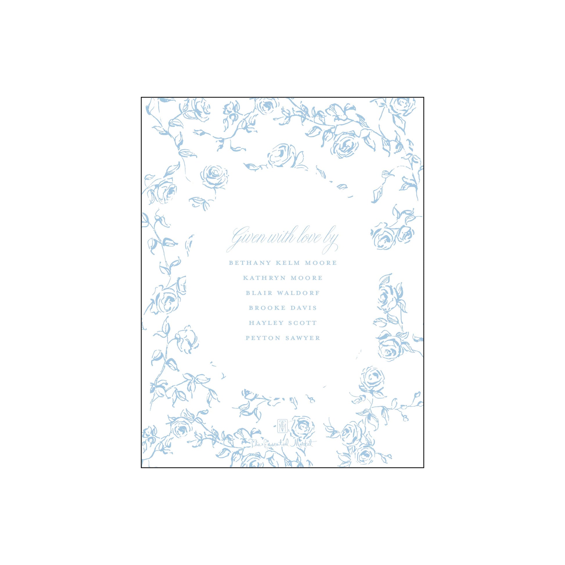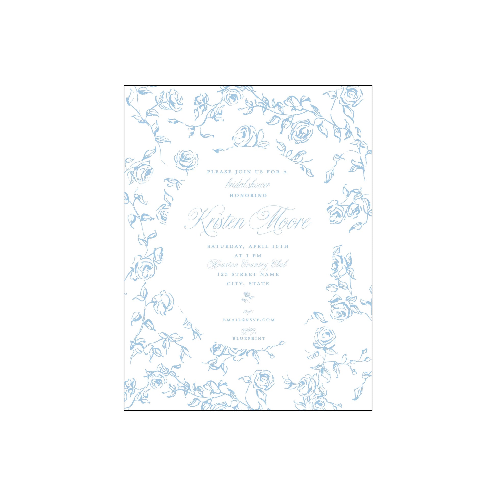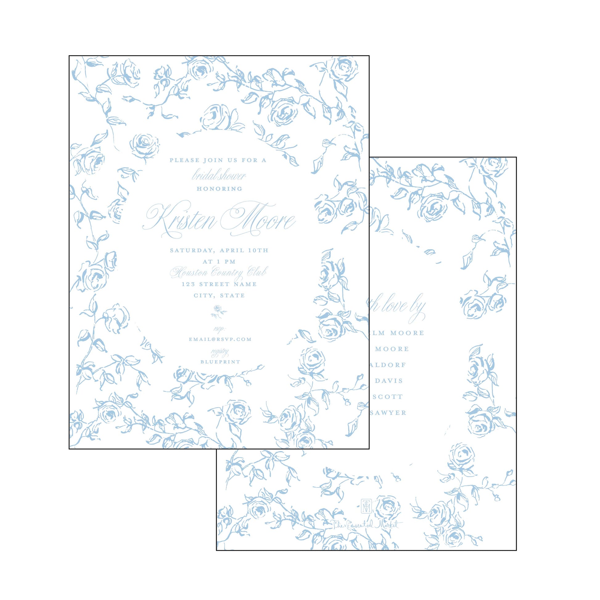 blue and white floral bridal shower | invitation