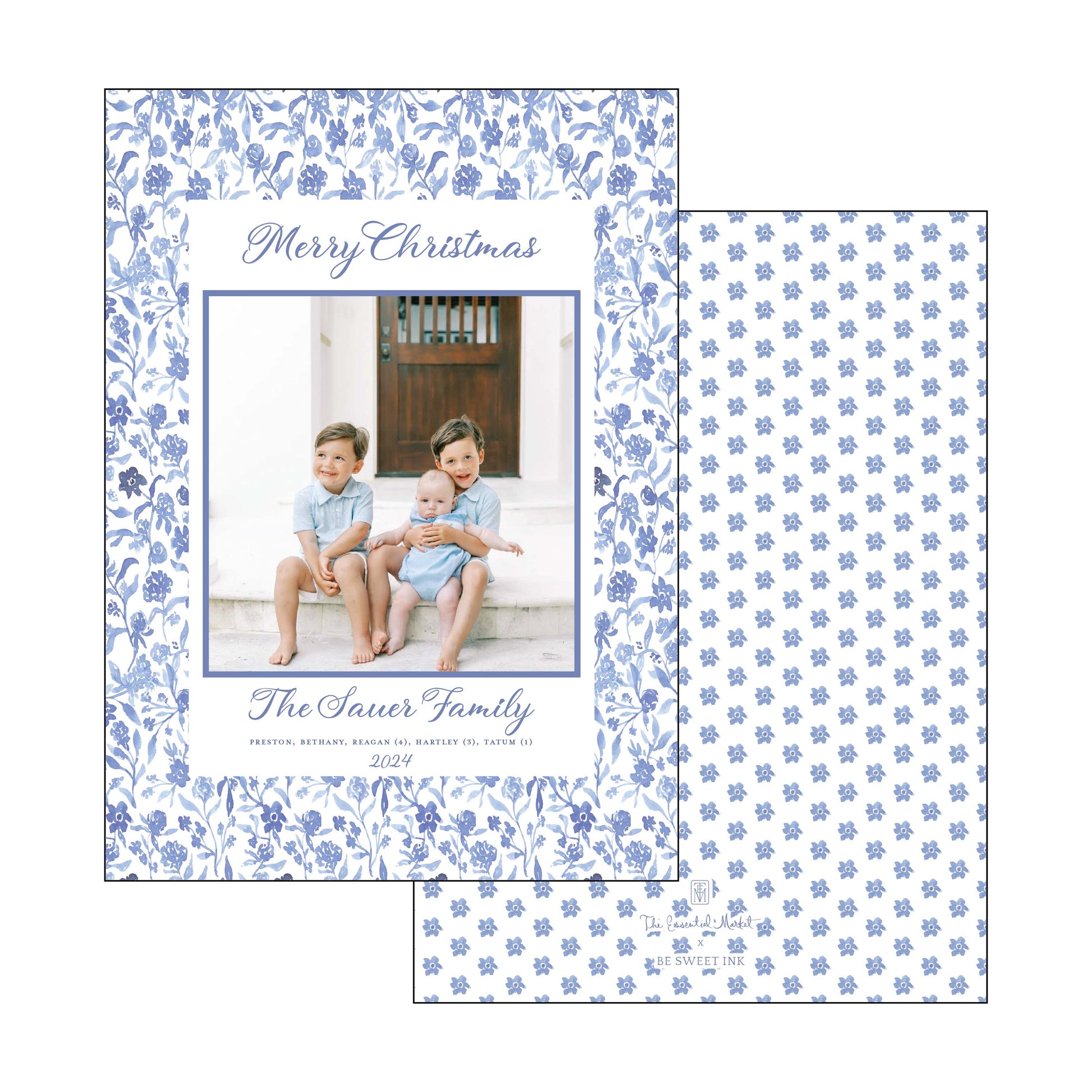 blue and white floral | holiday card | be sweet ink
