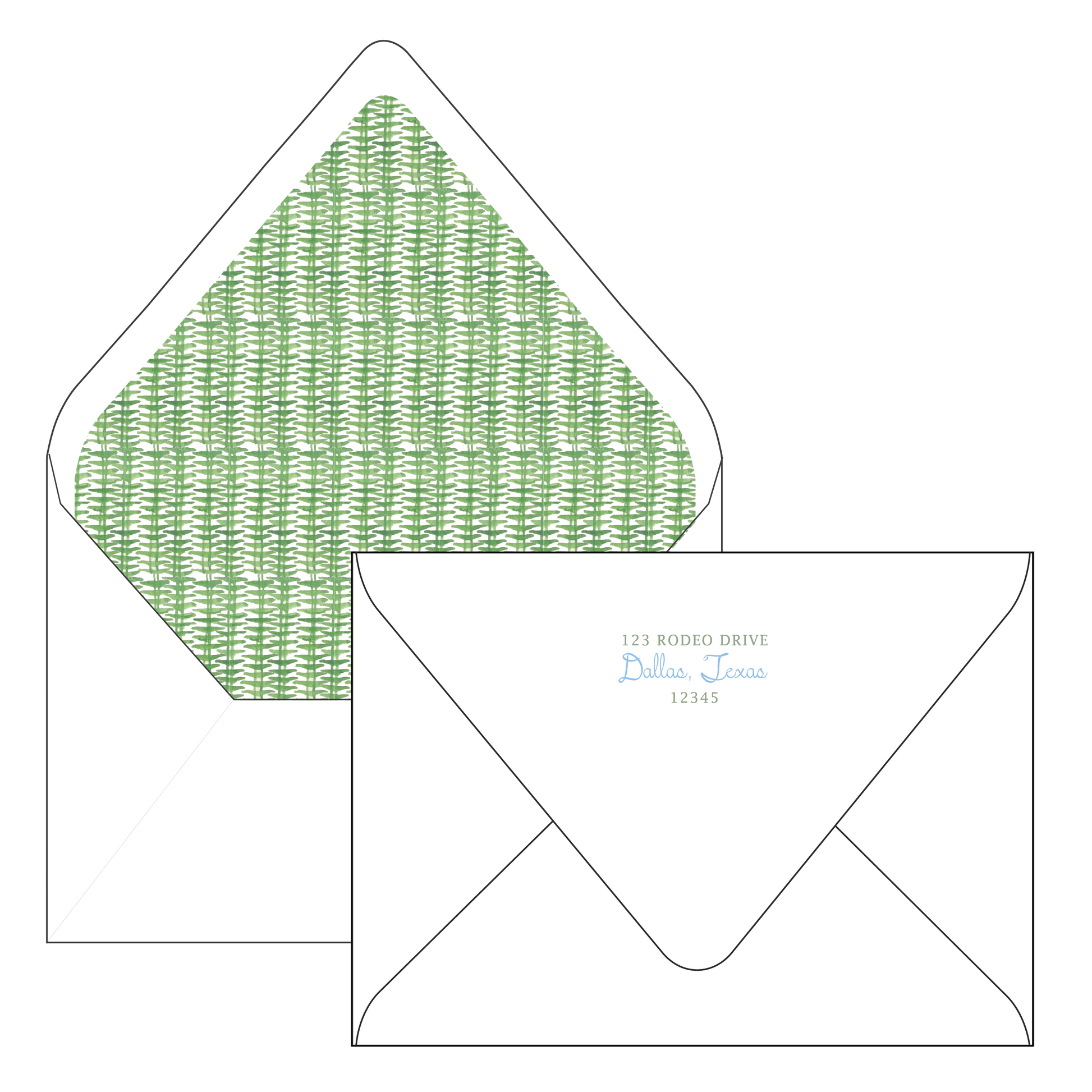 if you would like beautiful coordinating envelope liners, you'll see that option below. the pattern you see behind the envelope is the liner pattern. liners will come already inserted into your envelopes. if you do not add envelope liners, your envelopes will be plain, white inside.
