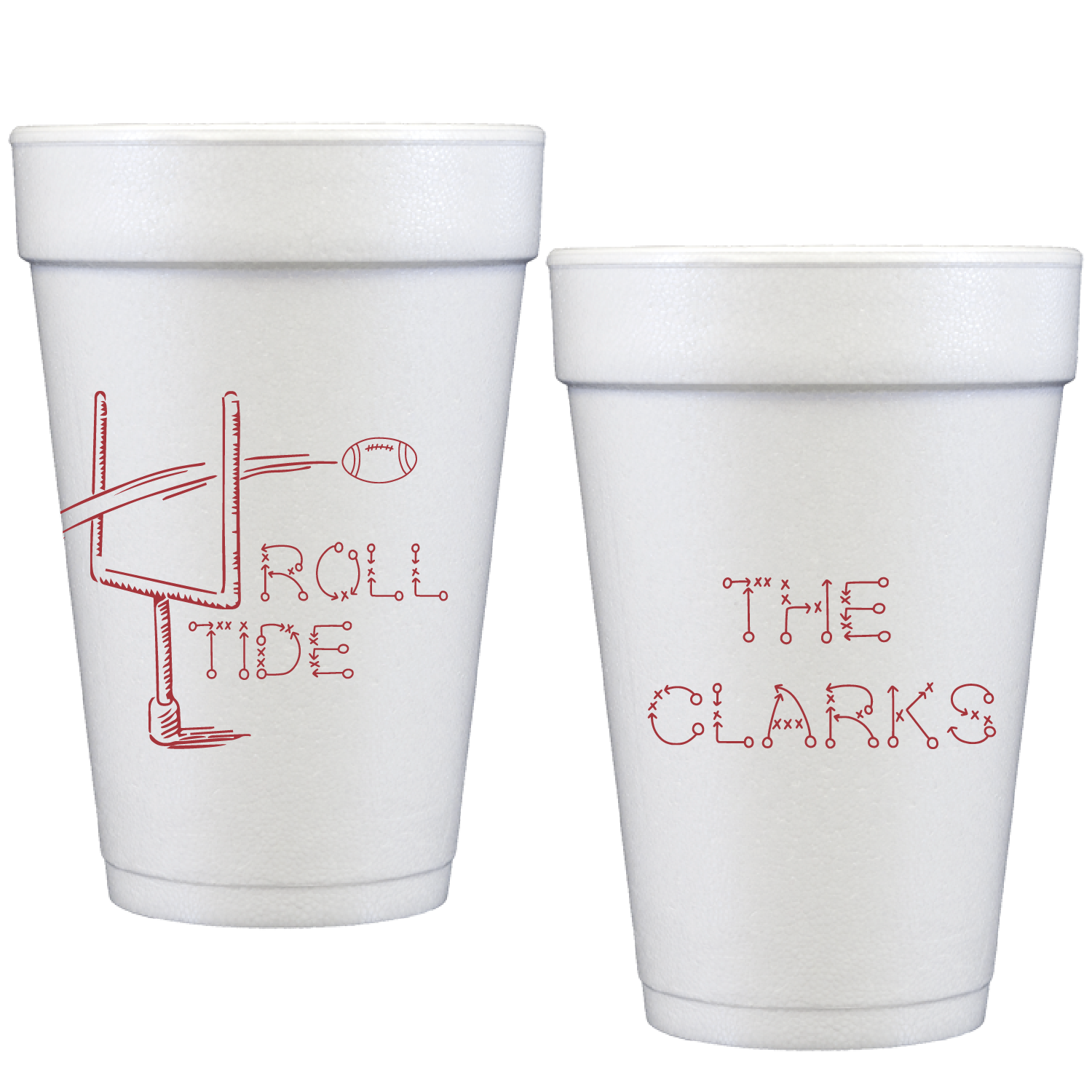 Personalized styrofoam cups are essential for college game days, tailgates, and football season.