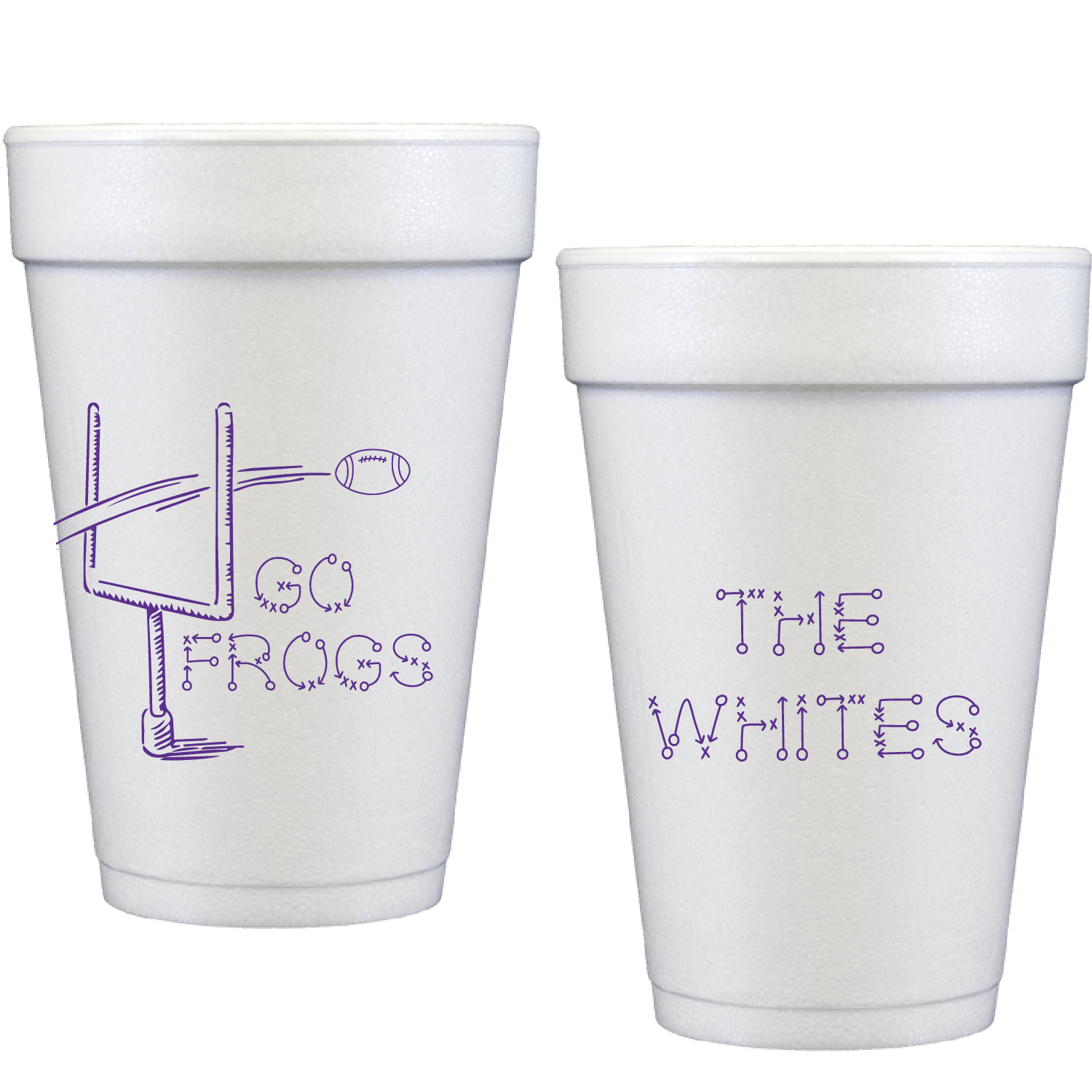 Personalized styrofoam cups are essential for college game days, tailgates, and football season.
