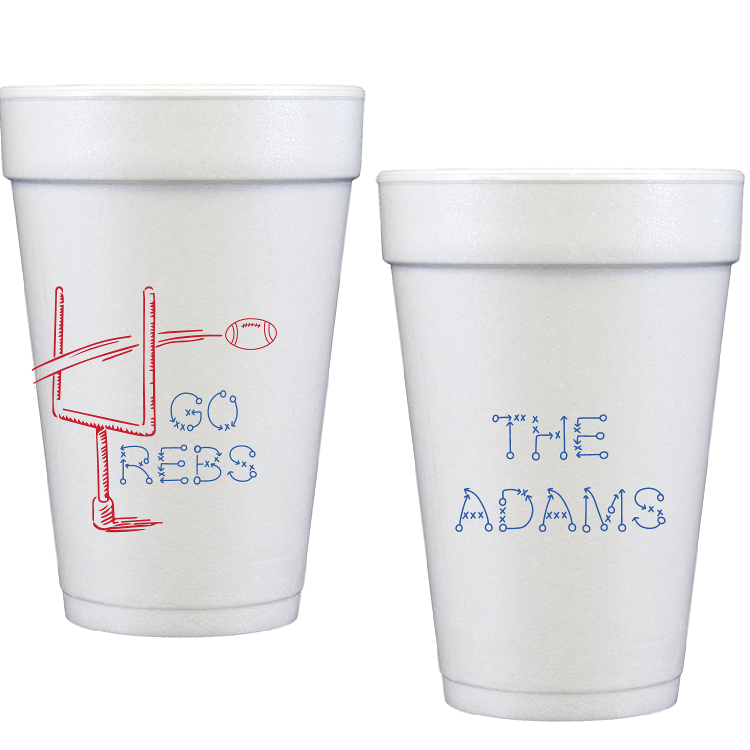 Personalized styrofoam cups are essential for college game days, tailgates, and football season.